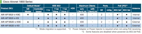 (1) the 1852e 2.4-GHz radio will shift to 2x3 from 3x4,