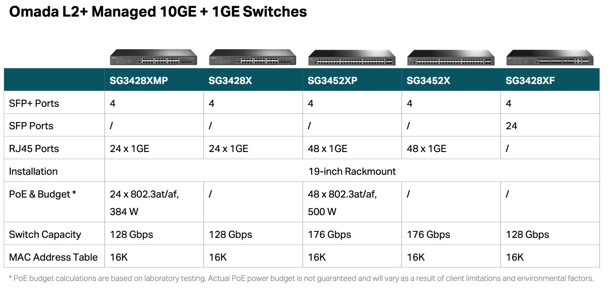 ● 1 x Omada 48-Port Gigabit L2+ Managed Switch with 4 10GE SFP+ (SG3452X)