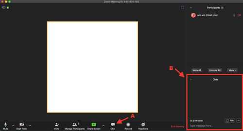 ปุ่ม Chat เป็นเครื่องมือที่เอาไว้พิมพ์ โต้ตอบ สามารถพิมพ์ไปยังบุคคลใดบุคคลนึง หรือ พิมพ์ไปถึงทุกคนได้ เมื่อเราคลิกที่ icon จะมี Chat Box ขึ้นมาด้านล่างขวามือ