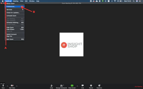 ให้คลิกที่ Zoom.us ตามรูป แล้วคลิกที่ Preferences