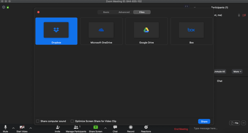 โดยเราสามารถส่ง File ให้กับผู้เค้าร่วมประชุมผ่าน Application Dropbox, Onedrive, Google Drive, Box