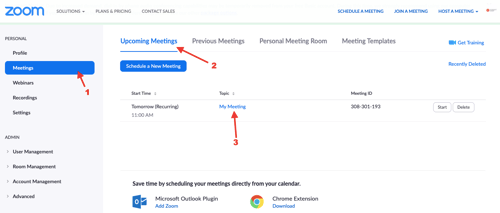 คลิก Meetings --> Upcoming Meetings --> My Meeting