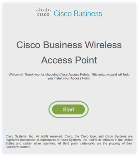 5. เข้าไปที่ Browser และพิมพ์ URL: http://ciscobusiness.cisco และกด Enter จะมีหน้าต่างนี้ขึ้นมา ให้กด Start เพื่อทำ step ถัดไป