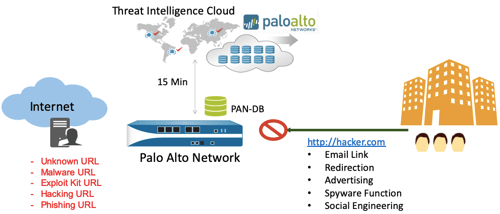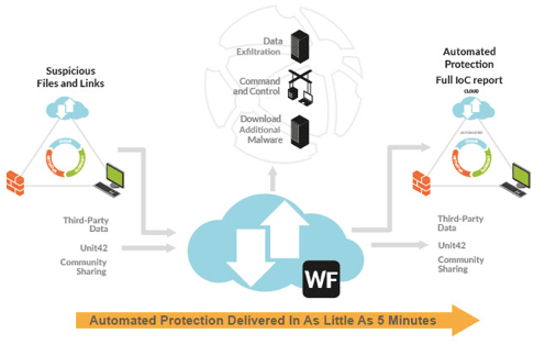 WildFire(Unknown Threat Prevention)• ตรวจเช็คไฟล์ที่ต้องสงสัยกับ database บน PaloAlto Cloud • ทดสอบการ run program บน Cloud sandbox เพื่อตอบว่าไฟล์ที่กำลังผ่านFirewall เป็นภัยคุกคามตัวใหม่ล่าสุดหรือเปล่า(Zero-Day malware) จะได้ทำการป้องกัน • ทำการอัพเดทการตรวจจับไวรัสที่ไม่มี signature หรือ unknown malware ภายใน5 นาที